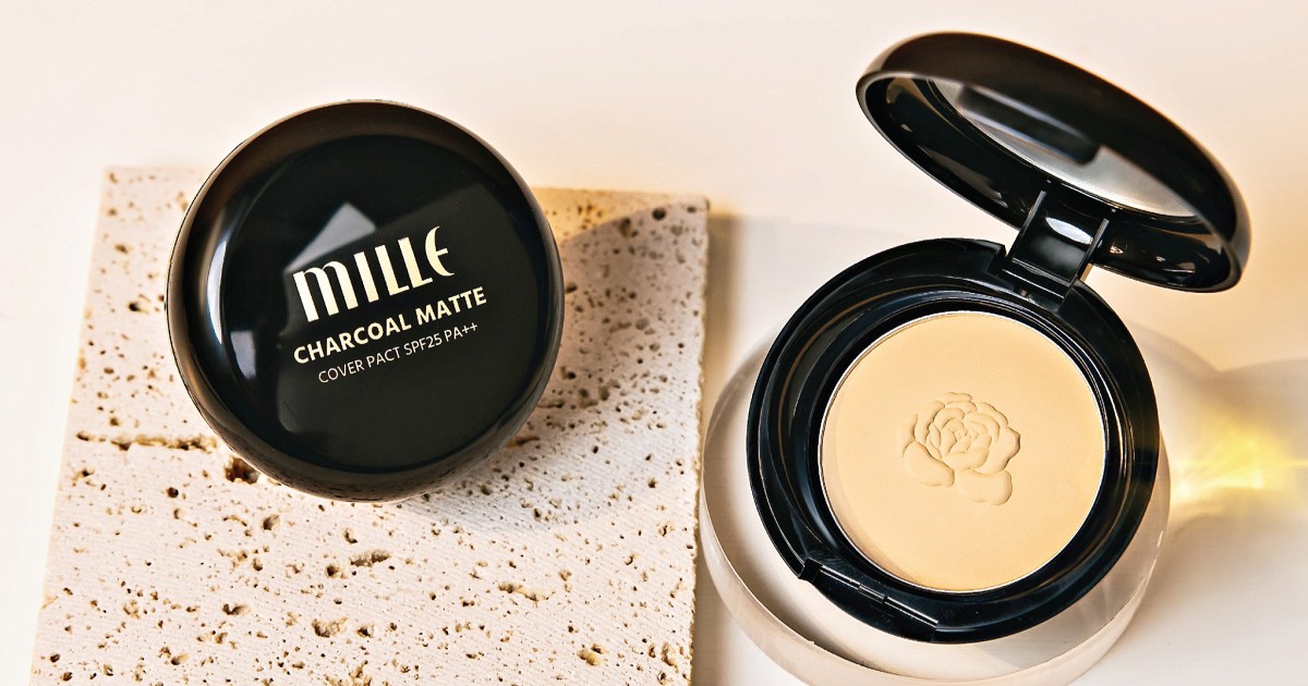 แป้งชาร์โคลผสมรองพื้น Mille Charcoal Matte Cover Pact SPF25 PA++ จากขนาดใหญ่สู่ขนาดใหม่ที่มีให้เลือกสำหรับคนอยากให้ขนาดจิ๋ว แต่เรื่องประสิทธิภาพเหมือนเดิมแน่นอน เพราะจะช่วยให้ผิวสวยเรียบเนียนแบบ HD มาพร้อมนวัตกรรมใหม่ล่าสุดที่มีสารสกัดสำคัญอย่าง Charcoal ที่จะช่วยป้องกันมลภาวะต่างๆ ที่ผิวต้องเผชิญ พร้อมช่วยจัดการความมันส่วนเกินบนใบหน้า และช่วยให้ผิวหน้าเนียนกริบระดับไมโคร ปกปิดทุกรอยแดง รอยดำ สิว ริ้วรอย ติดทนยาวนานจากเช้าจรดเย็น ที่สำคัญยังสามารถกันน้ำได้แน่นสุดๆ แถมยังผลิตส่งตรงมาจากญี่ปุ่น