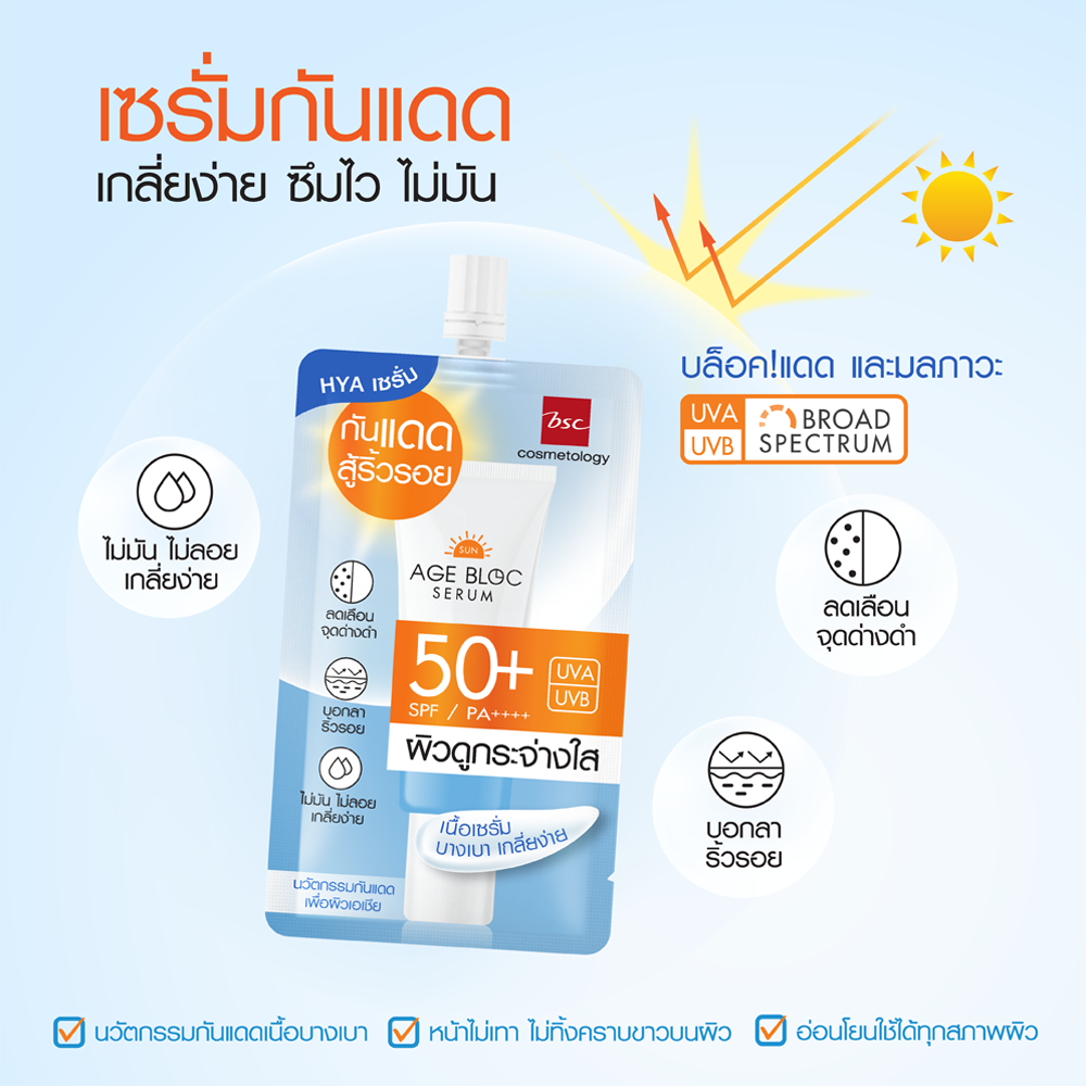 กันแดดสู้ริ้วรอยตัวใหม่ BSC SUN AGE BLOC SERUM SPF50+ PA++++ เซรั่มกันแดดพร้อมบล็อคอายุผิว!