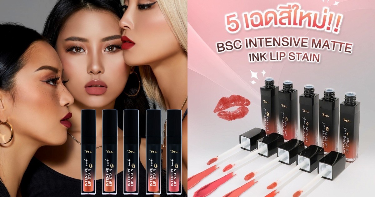 งานสีปากแซ่บๆ ไม่มีแผ่ว 5 เฉดสีใหม่จาก BSC INTENSIVE MATTE INK LIP STAIN ลิปลิควิดเนื้อแมตต์ไม่ติดแมสก์ ให้สีสวย มอบสัมผัสเนียนนุ่ม เกลี่ยง่าย บางเบา และติดทนนาน ให้ปากดูอวบอิ่มสีสวยชัดครบทุกสี!