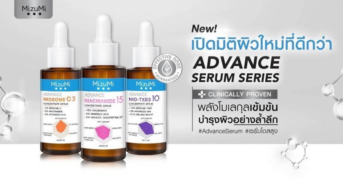 เปิดตัวเซรั่มใหม่! พร้อมเปิดมิติผิวใหม่ที่ดีกว่า ด้วย MizuMi Advance Serum เซรั่มพลังโมเลกุลเข้มข้นแบบจัดเต็ม พร้อมบำรุงผิวอย่างล้ำลึก เซรั่มโดสสูงที่มาพร้อมกับ 3 สูตรเพื่อตอบโจทย์ความต้องการของ 3 ปัญหาผิว มาพร้อมกับนวัตกรรมทรงพลังสุดล้ำแน่นเต็มขวด