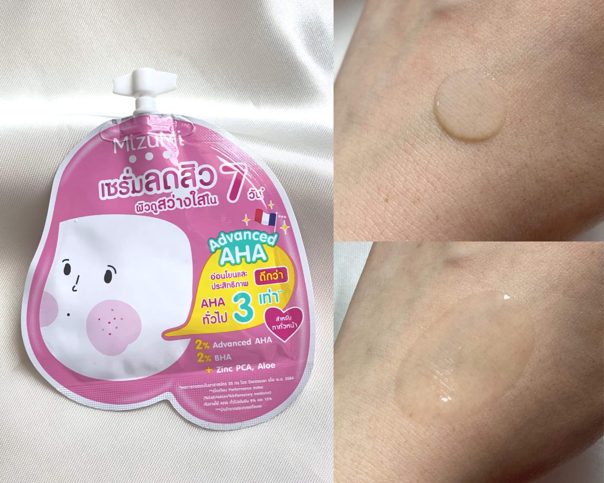 เซรั่มลดเลือนรอยสิว ส่วนใหญ่จะมีส่วนผสมของ Vitamin C และ BHA, AHA ผลัดเซลล์ผิวอ่อนๆ ด้วย
