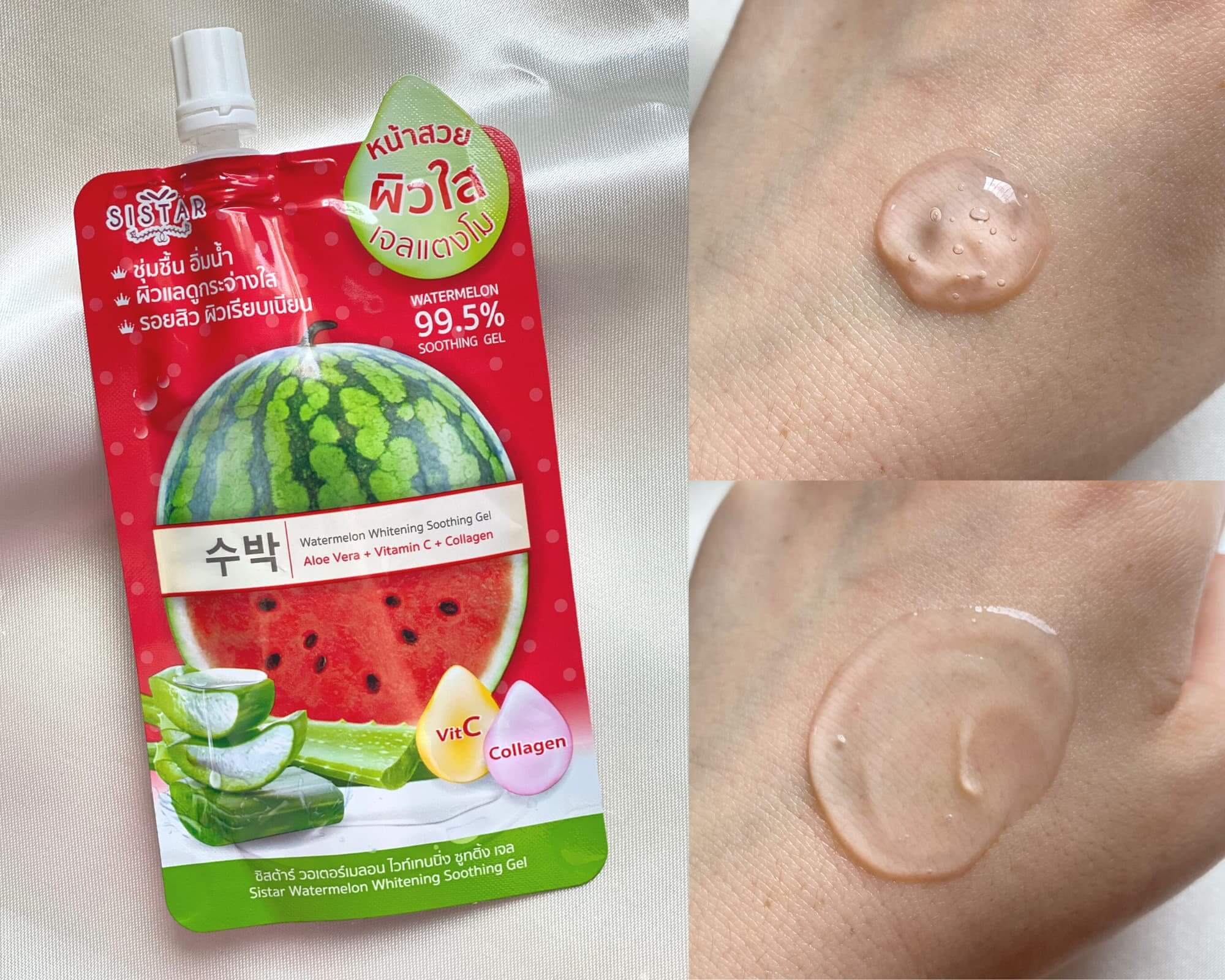 ซูทติ้ง เจลแตงโม ช่วยปลอบประโลมผิวหลังจากที่ผิวโดนแดดและมลภาวะ เพราะนอกจากเขาจะมีส่วนผสมของแตงโมแล้ว ยังมีส่วนผสมของว่านหางจระเข้ที่ช่วยบำรุง มอบความชุ่มชื้น ดูแลได้ทั้งผิวหน้า และผิวกาย แถมมีกลิ่มหอมอ่อนๆ ของแตงโม ทาแล้วรู้สึกผิวอุ้มน้ำ รีเฟรชผิวให้กลับมาสดใสได้อีกครั้ง