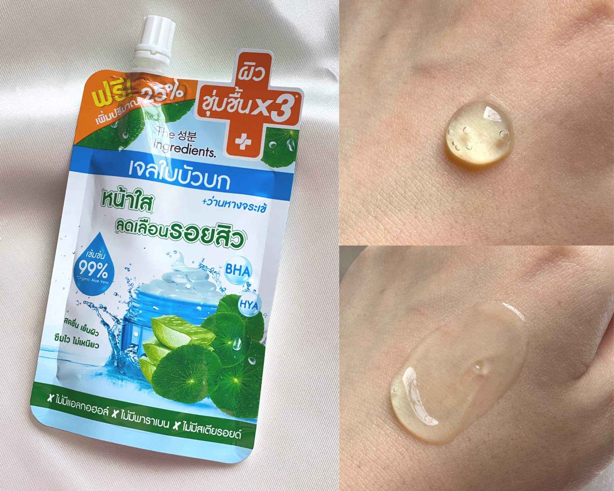 เนื้อสัมผัส:เนื้อเจลที่ทาแล้วแตกตัวเป็นน้ำ ซึมซาบเข้าผิวได้ทันที ไม่ทิ้ง ความรู้สึกเหนอะ มอบความชุ่มชื้นได้ดี
