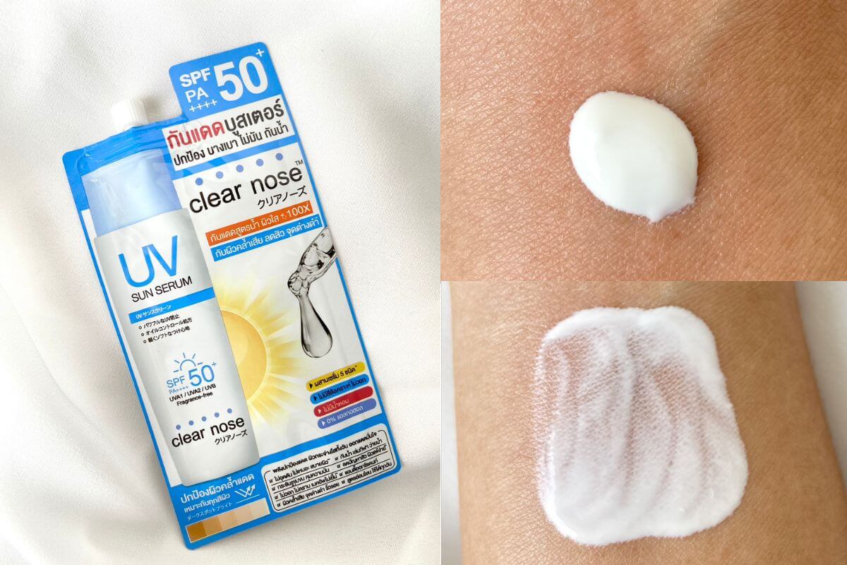 1clear nose UV Sun Serum SPF50+ PA++++ 2Biore UV Aqua Rich Watery Gel SPF50+ PA++++ 3NIVEA Sun Extra Protect Oil Control 4Cathy Doll Ultra Light Sun Fluid 5KA UV Whitening Soft Cream 6SMOOTO Hya C Bright Up Sunscreen SPF50 PA+++ 7ศรีจันทร์ Luminescence Fabulous UV Shield 8Cute Press Uv Expert Protection All Day Bright Tone Up 9L'Oreal UV Defender 10NIVEA Sun Extra Protect C&E Vitamin Sun Care SPF 50+ PA+++
