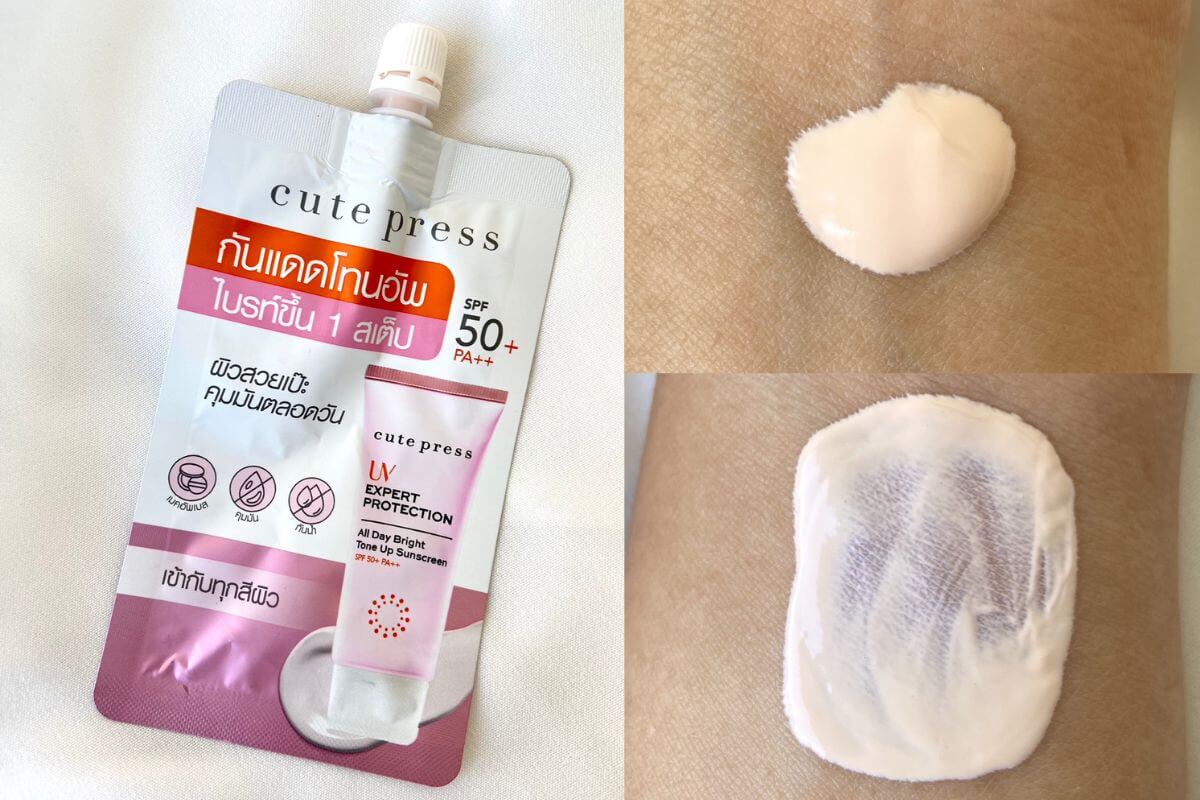 ครีมกันแดดโทนอัพของ Cute Press นอกจากกันแดดแล้วยังช่วยอัพผิวให้ไบรท์ขึ้นอีก 1 สเต็ปด้วย เหมือนเป็นเบสเมคอัพในตัว วันไหนอยากได้ลุคใสๆ ธรรมชาติ ก็ใช้แค่น้องตัวนี้ก่อนลงแป้งได้เลย