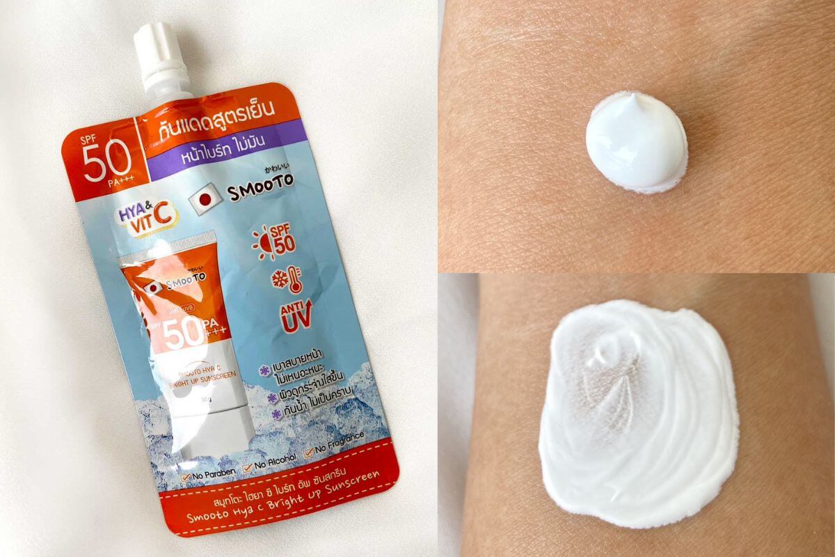ครีมกันแดดอัพผิวไบรท์ของสมูทโตะ เค้าเป็นสูตรเย็นสบายผิว ด้วยความที่เป็นกันแดดโทนอัพก็จะช่วยปรับผิวให้สว่างขึ้น 2 ระดับอย่างเป็นธรรมชาติ ฟีลตอนทาจะให้ความรู้สึกเย็นสดชื่นด้วย