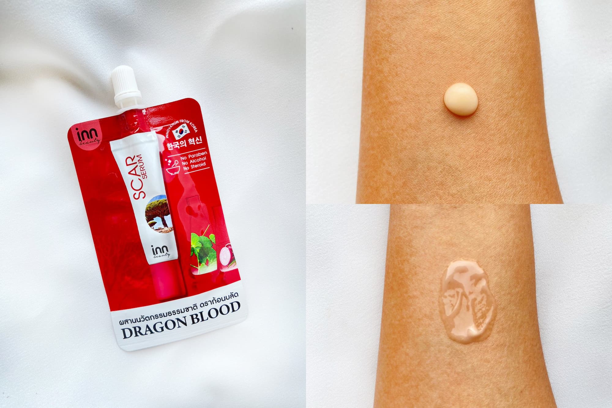เซรั่มซองแดงจากอินน์ บิวตี้ ตัวนี้เป็นดราก้อนบลัด เซเว่น ที่ช่วยดูแลปัญหารอยแผลเป็น อย่างรอยแผลผ่าตัด รอยแผลถลอก หรือรอยแดง รอยดำที่เกิดจากสิว และยังช่วยจัดการปัญหาสีผิวไม่สม่ำเสมอด้วย