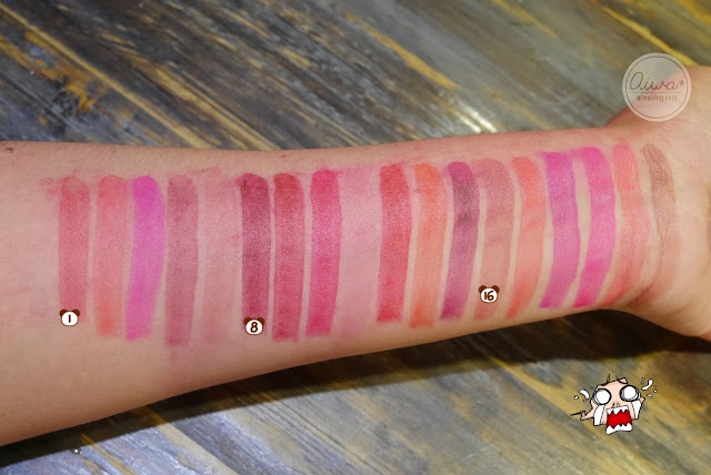 aiwa103นี่ไปได้มาจากงาน 3 สี ในกล่องแบบนี้เลย ก็เลยจะมารีวิวกันนะคะ ตัวแพคเกจ จะขนาดกระทัดรัดนิดนึง เป็นหลอดขุ่นๆ แล้วก็มีฝาปิดสีทอง ซึ่งเราจะเห็นสีลิปได้เลยชัดเจน ในไทยนำเข้ามา 18 สี แต่เลขสีไม่ครบ มีรันไปถึงเลข 23 เลยค่ะ