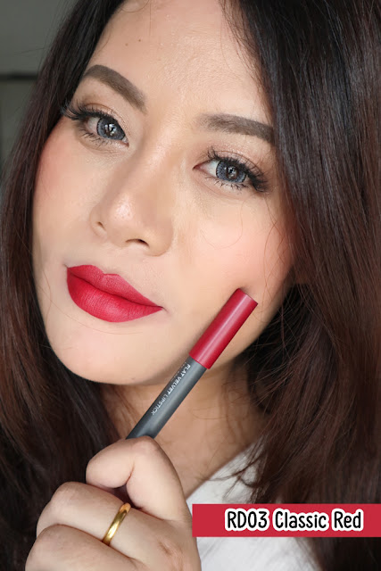 มีทั้งหมด 12 สี 2 รุ่น 2 เนื้อ คือเป็นรุ่น Matte กับรุ่น Gloss นั่นเองค่ะ ตัวแมทนี่จะเห็นเลยว่า 6 สีแรกคือ แมทมากๆ เนียนกริบไปเลย ส่วน 6 สีด้านขวา เค้าบอกว่าเป็นรุ่นกลอส แต่สีชัดแน่นๆมากๆ แถมติดทนด้วยค่ะ เนื้อจะวาวๆกว่านิดนึง