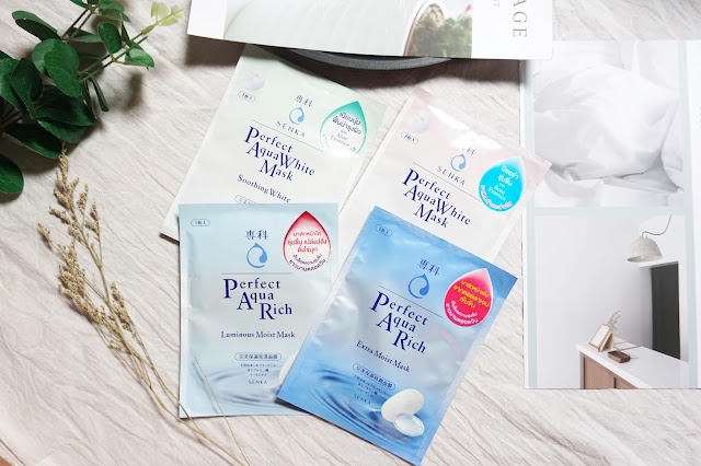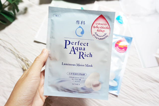 เริ่มจากสูตรแรกSENKAPerfect Aqua Rich Extra Moist Mask(เซนกะ เพอร์เฟ็ค อะควา ริช เอ็กซ์ตร้า มอยส์ มาส์ก) สำหรับสูตรนี้เขาช่วยเติมความชุ่มชื่นอย่างล้ำลึกให้กับผิวด้วยส่วนผสมจากคอลลาเจนเข้มข้น พร้อมเก็บล็อคความชุ่มชื่นยาวนานตลอดทั้งวัน เพื่อให้ผิวเนียนนุ่ม ชุ่มชื่น โดยเหมาะสำหรับทุกสภาพผิว หรือคนที่แต่งหน้า รองพื้นไม่ติดผิว เนื่องจากผิวแห้งขาดความชุ่มชื่น สูตรนี้จะเหมาะมากกก