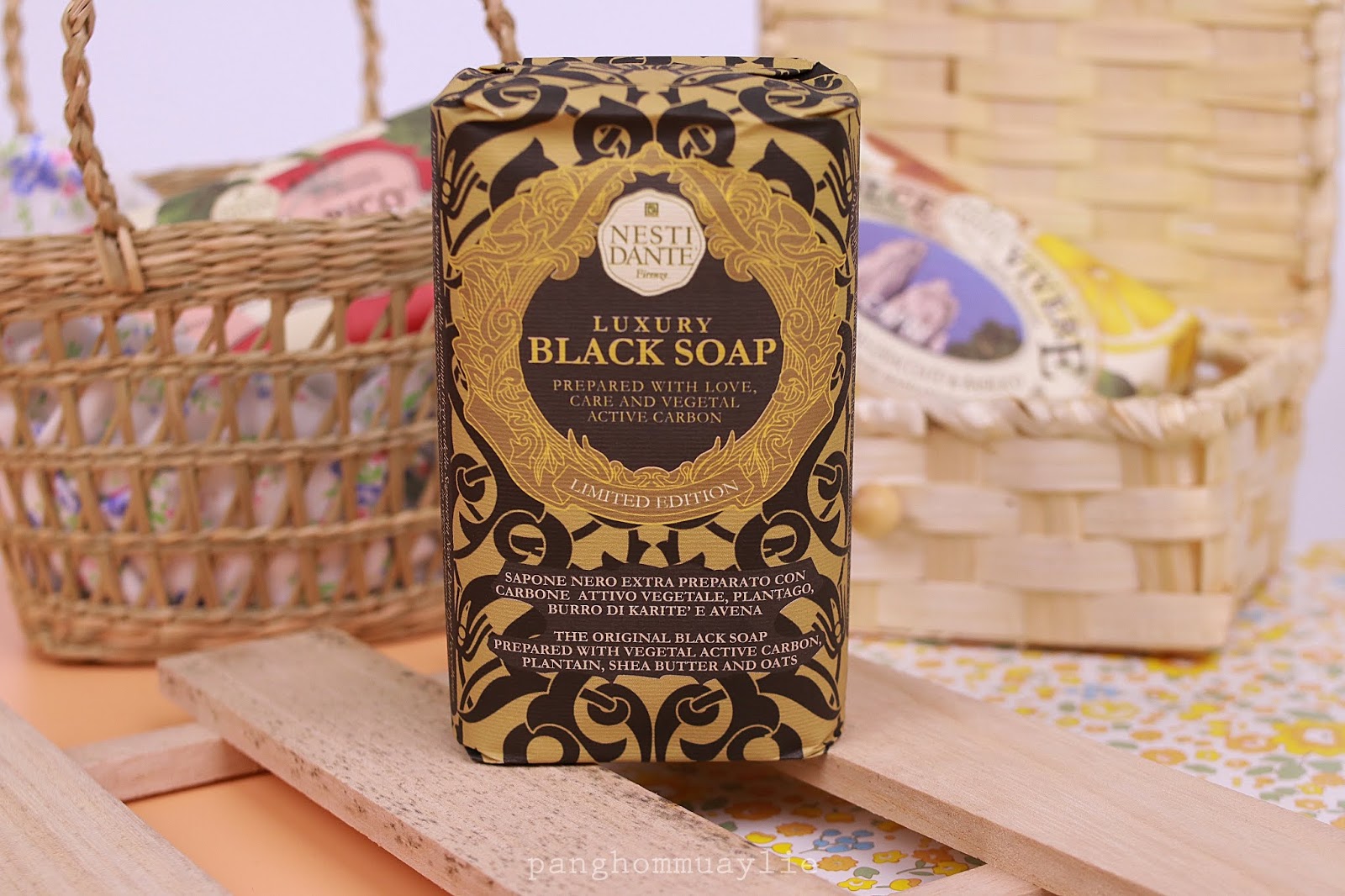 - Nesti Dante Luxury Black Soap : สารสกัดหลักๆของสูตรนี้มาจากชาร์โคล สาวรู้ๆกันอยู่แล้วเนอะ ชาร์โคลทำหน้าที่ช่วย Detox พวกสารพิษต่างๆจากผิวของเรา พอDetoxสารพิษออกไปแล้ว ก็จะทำให้ผิวของเราดูสุขภาพดีขึ้น นอกจากชาร์โคล ยังมี Plantain ช่วยกระตุ้นการสร้างคอลลาเจนที่ผิว, Oats และ Cocoa ช่วยให้ผิวชุ่มชื้น เด้งๆดึ๋งๆ, Shea Butter ช่วยให้ผิวเนียนเรียบ ริ้วรอยดูตื้นขึ้น