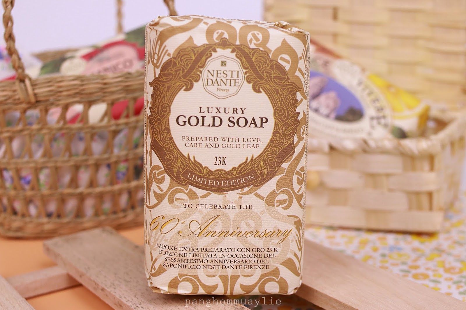 - Nesti Dante Luxury Gold Soap : สูตรนี้ทำขึ้นในโอกาสครบรอบ 60 ปี ของ Nesti Dante สูตรนี้มีสารสกัดจากทองคำบริสุทธ์ 24 กะรัต (OMG !!!) ใส่มากับกลิ่นของดอก Noble Iris เป็นดอกไม้ประจำเมืองฟลอเรนซ์ที่อิตาลี แน่นอนแหล่ะ ทองคำจะช่วยให้ผิวเรากระชับ เนียนนุ่ม และช่วยต่อต้านสารอนุมูลอิสระด้วย ผิวเราจะสวยแบบคลีโอพัตรา เนื้อสบู่ของสูตรนี้มีความเนียนละเอียด สามารถช่วยลดอาการผิวแห้งและผื่นคันได้ด้วย